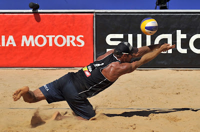 In their afternoon match in front of a very enthusiastic center court crowd, they came from behind to upset USA’s top-seeded Phil Dalhausser/Todd Rogers, 18-21, 21-18 and 15-9 in 56 minutes. “It has been my dream to play against Dalhausser and Rogers,” said a very happy Felipe, the third-youngest men’s player in this tournament (21 years, one month and nine days) who has already in his career earned two silver medals and a bronze in the FIVB SWATCH Junior World Championships for players under 21 years old. “I used to watch them on TV and was impressed with their game. Both of us, Moises and I, entered to play for fun and give our best effort against them. And it worked. We tried to force the serve to Dalhausser, since the other teams generally go to Rogers. The sun also helped us and it was stressful for the Americans. I am very, very happy. In fact, I can’t believe it.”
